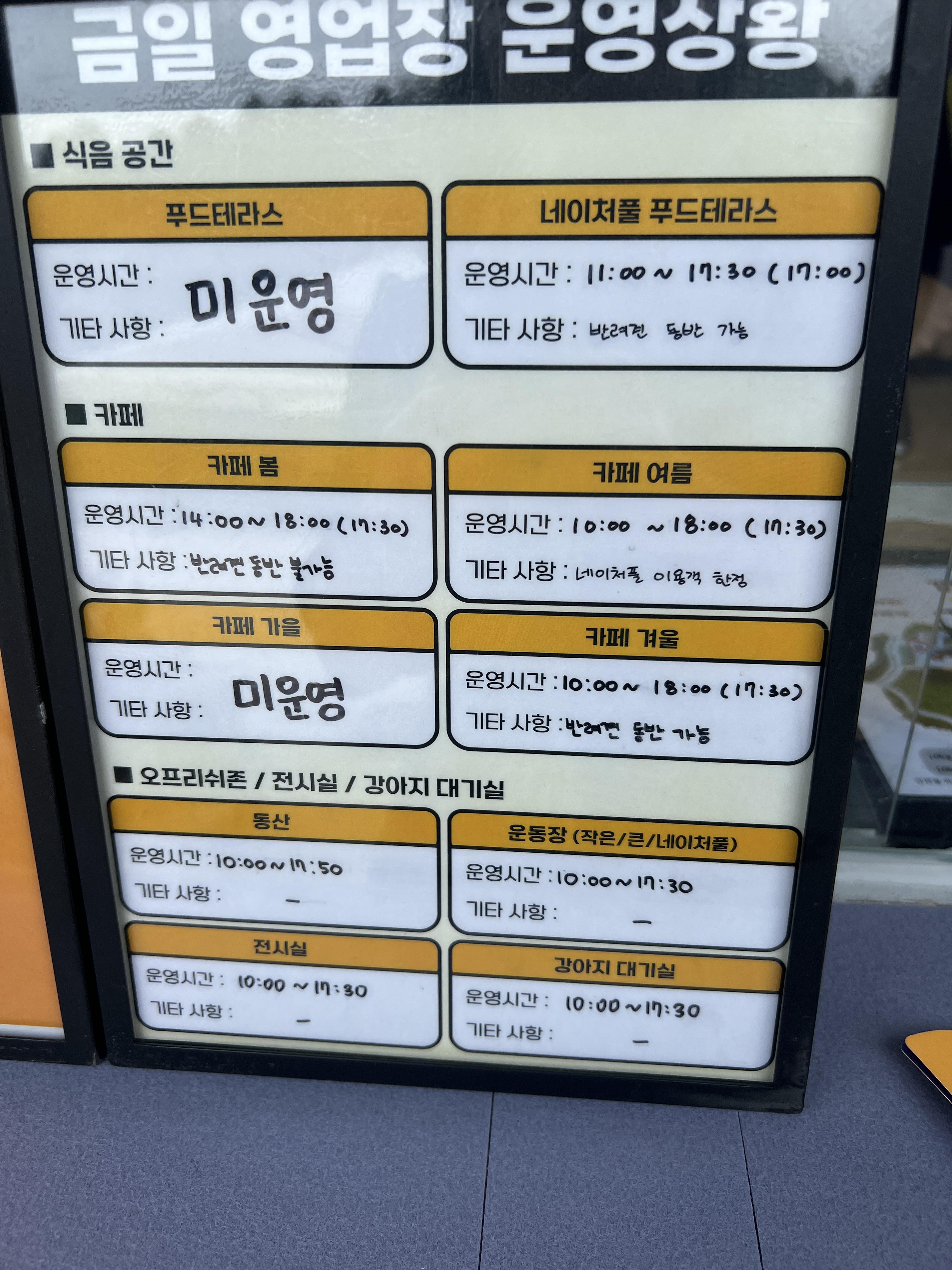 - 중소형견과 대형견이 입장할 수 있는 날이 나뉘어 운영되므로, 이용에 참고 부탁드립니다.