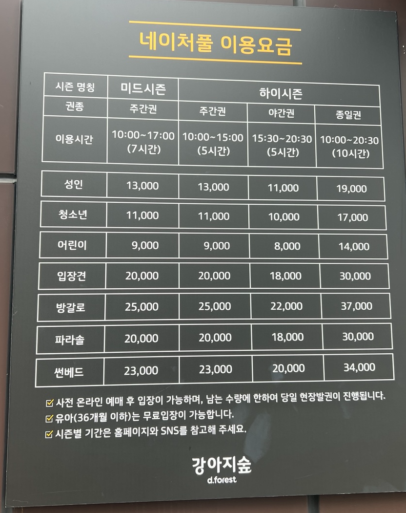 - 네이처풀 티켓 구매고객은 강아지숲 전 구역을 이용할 수 있습니다.