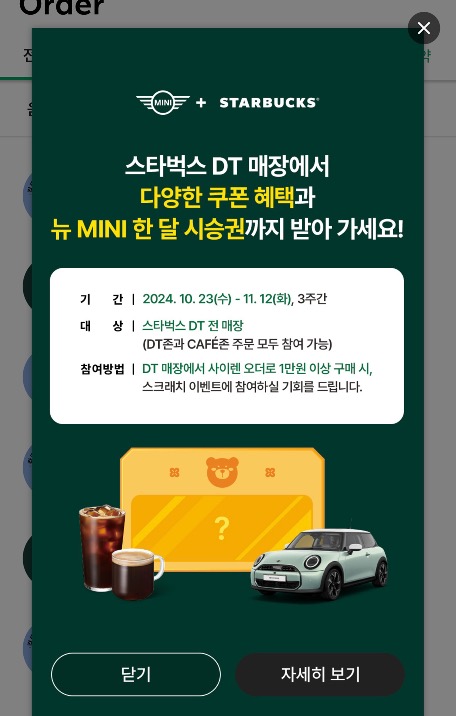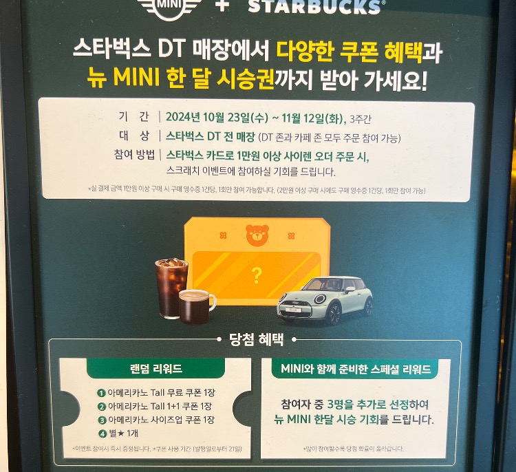 스벅 DT 매장에서 행해지고 있는 행사입니다.