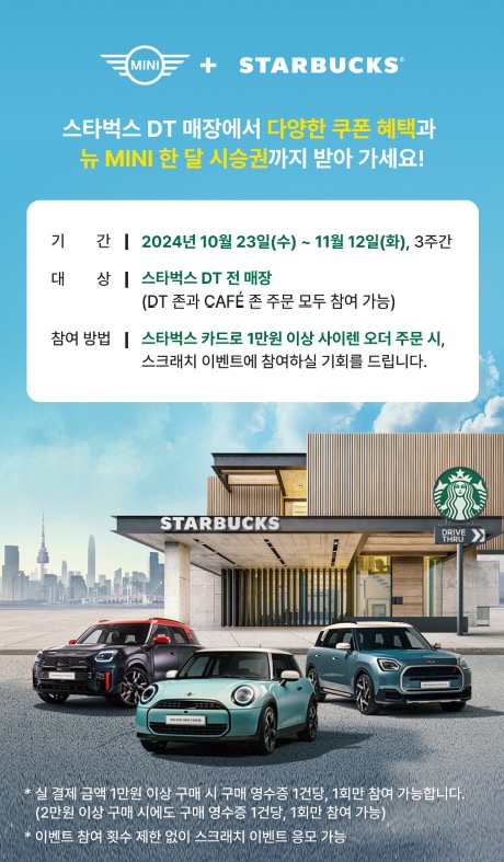 참여자중 추가 세명에게 뉴 미니 한달 시승권을 그대 품안에 드려요.