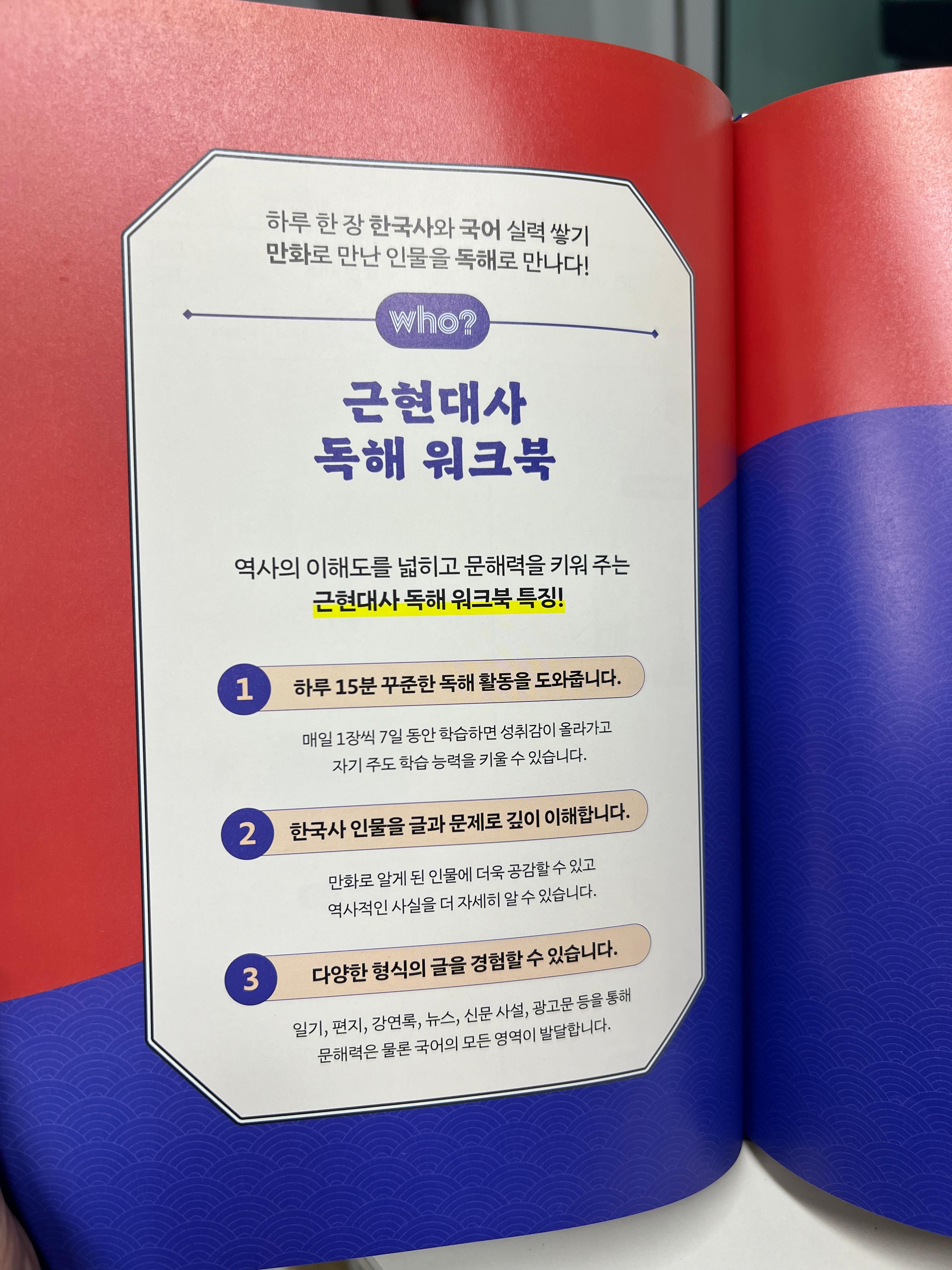 이번 신간에는 근현대사 독해 후 워크북이 함께 있어요.