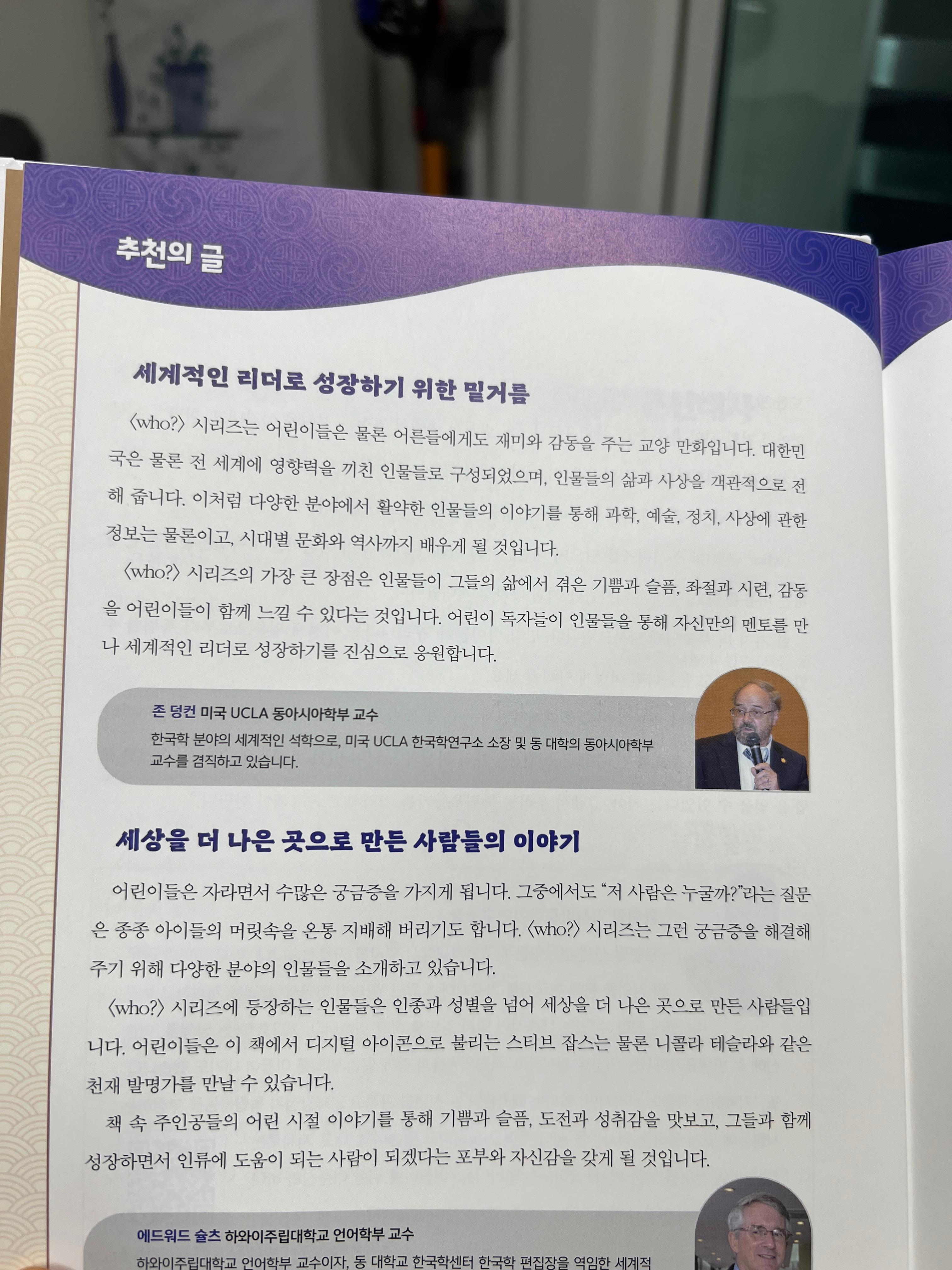 존 덩컨: 후 시리즈의 가장 큰 장점은 인물들이 그들의 삶에서 겪은 기쁨과 슬픔, 좌절과 시련, 감동을 어린이들이 함께 느낄 수 있다는 것입니다. 어린이 독자들이 인물들을 통해 자신만의 멘토를 만나 세계적인 리더로 성장하기를 진심으로 응원합니다.
