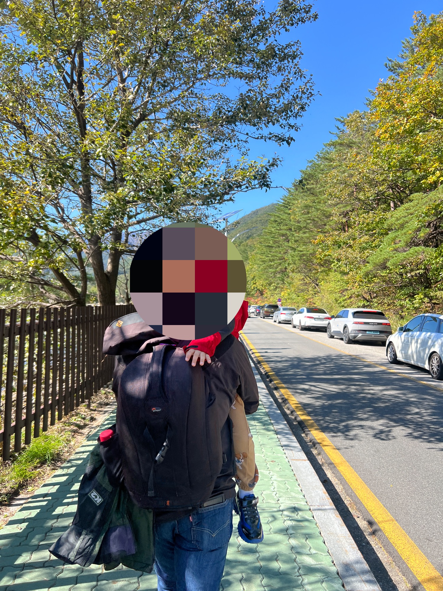 아이와 함께 천천히 걸으며