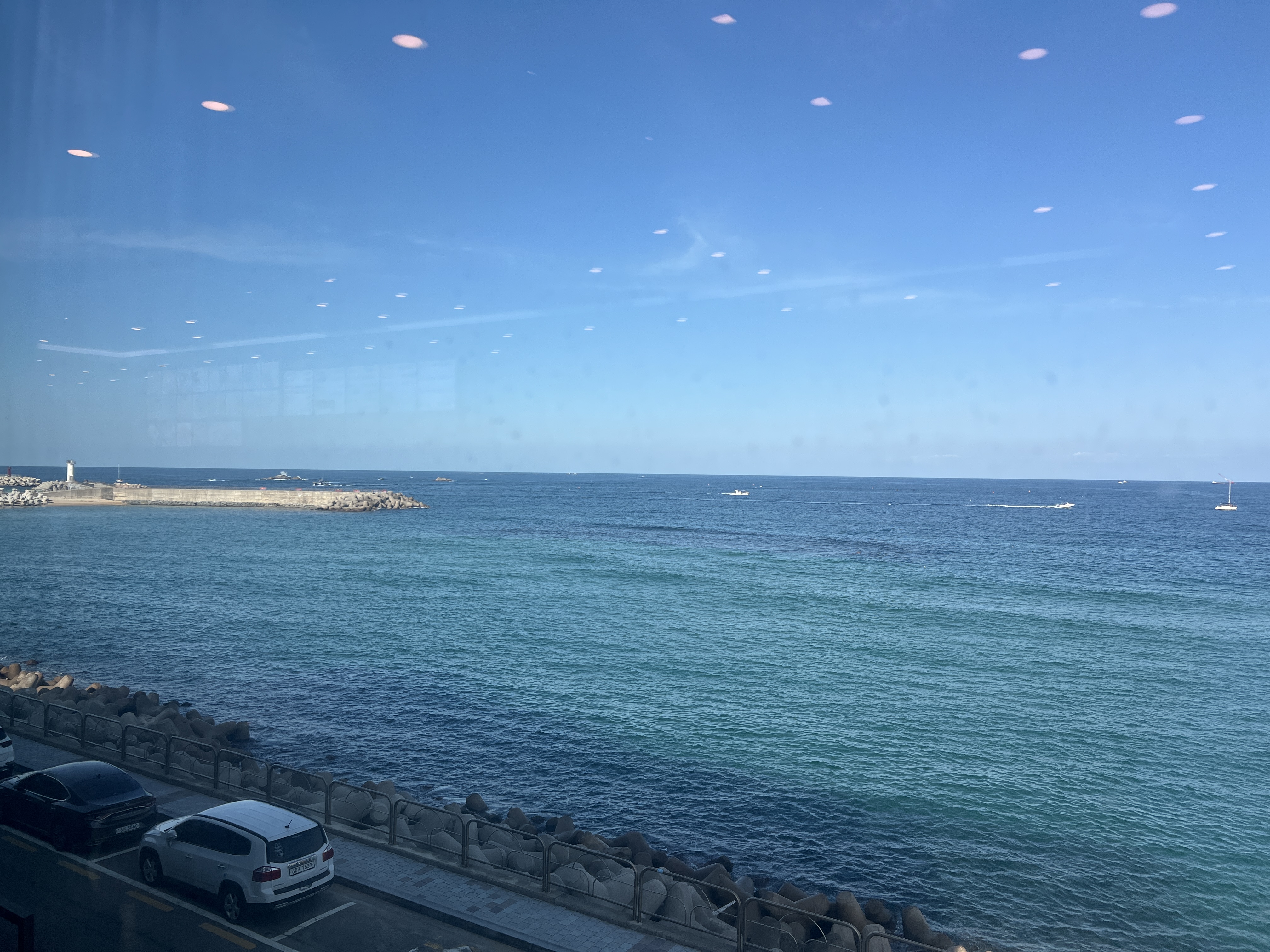 밥 먹다가 이렇게 이쁜 동해가 보이지요
