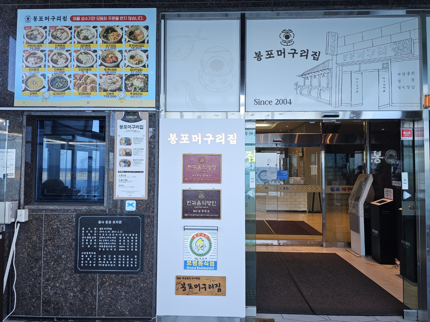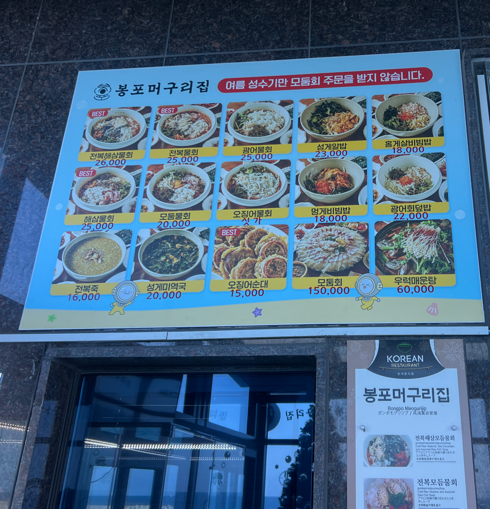 봉포머구리집 메뉴와 가격