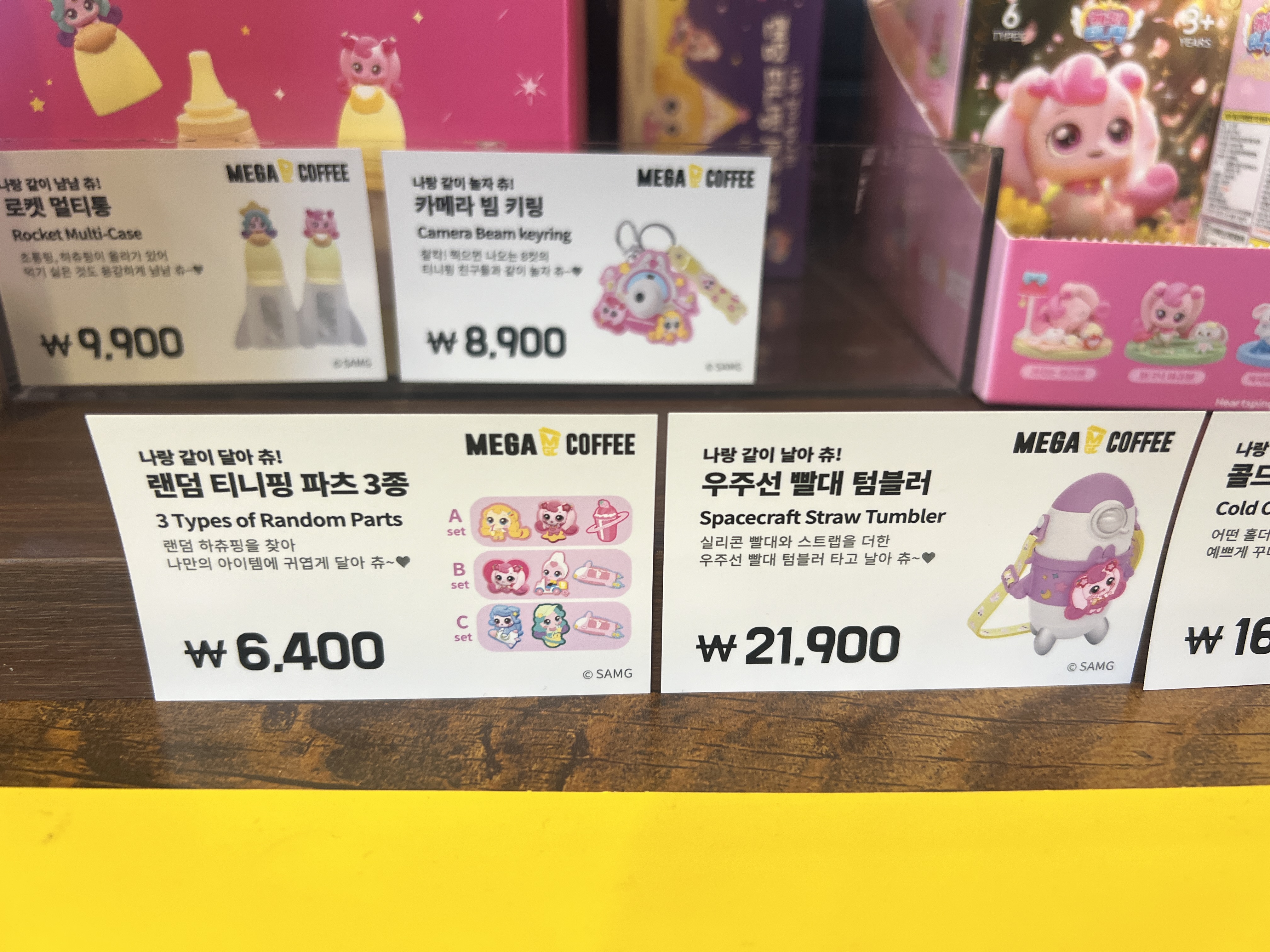 랜덤 티니핑 파스 3종에 우주선 빨대 텀블러에요